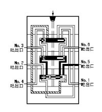 | 7、流入的潤滑劑推動活塞A 向右運動、右腔的潤滑劑壓向NO.6吐出口,經(jīng)外部配管送向潤滑點。當(dāng)活塞A移動到至右極限時返回到初始1狀態(tài),繼續(xù)重復(fù)上述動作。 |
